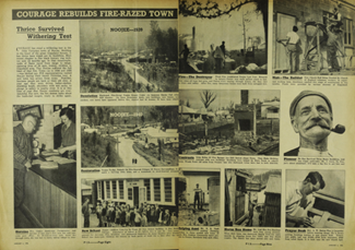 “It was close on 2 o‘clock when I left the post office. I got into a pool behind the hotel. There were about 60 people there. We just crouched in the river. It was about 20 feet wide and the edges were burning. Burning leaves and debris were falling in the water. We stayed in the water until about seven o‘clock.”