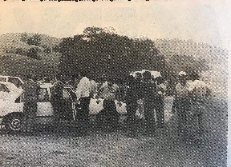 Ivan Sartori, an experienced officer based at Trentham, was immediately dispatched with six men from FCV Creswick to patrol the new line. They did not have a portable radio and arrived at the bottom of the drop-off in Dales Creek at 12.30-1.00 pm and could see that fire had spotted over the new control line on the other side of the gully, but it was backing slowly into the wind.