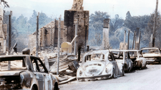 Similarly, at Mt. Macedon, one of the few buildings that survived was the Mountain Inn owned by Paul Hanbury and his wife Robyn where people sheltered. The Australian Counter Disaster College building at Mt. Macedon also provided refuge for about 120 fleeing residents.