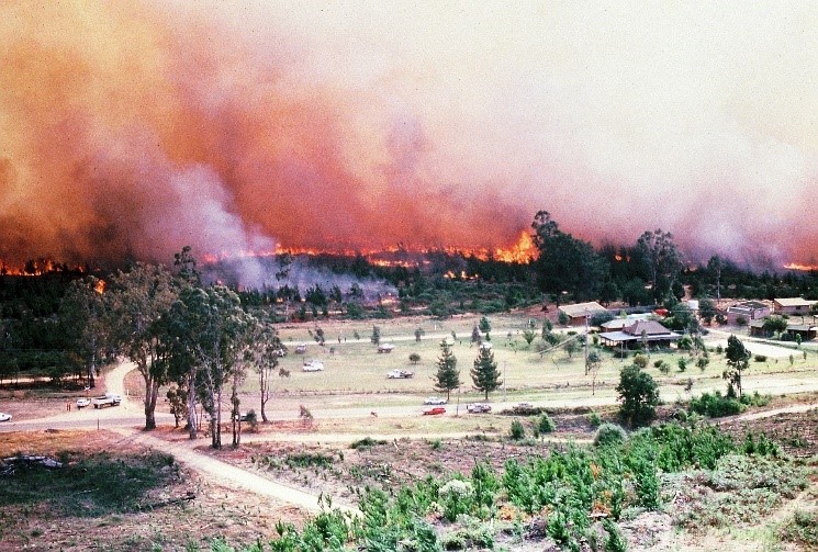 The most significant feature of this particular fire was the long-distance spotting of up to 1.8 km in pine plantations.