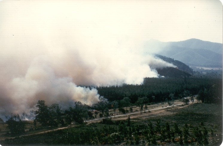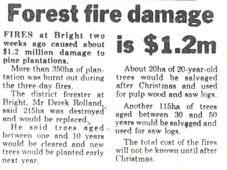 This 1982 Bright plantation fire is often confused with major bushfires at Bright and Mt Buffalo two years later on 14 January 1985 when 111 lighting strikes in 24 hours caused widespread fires across the alpine region.