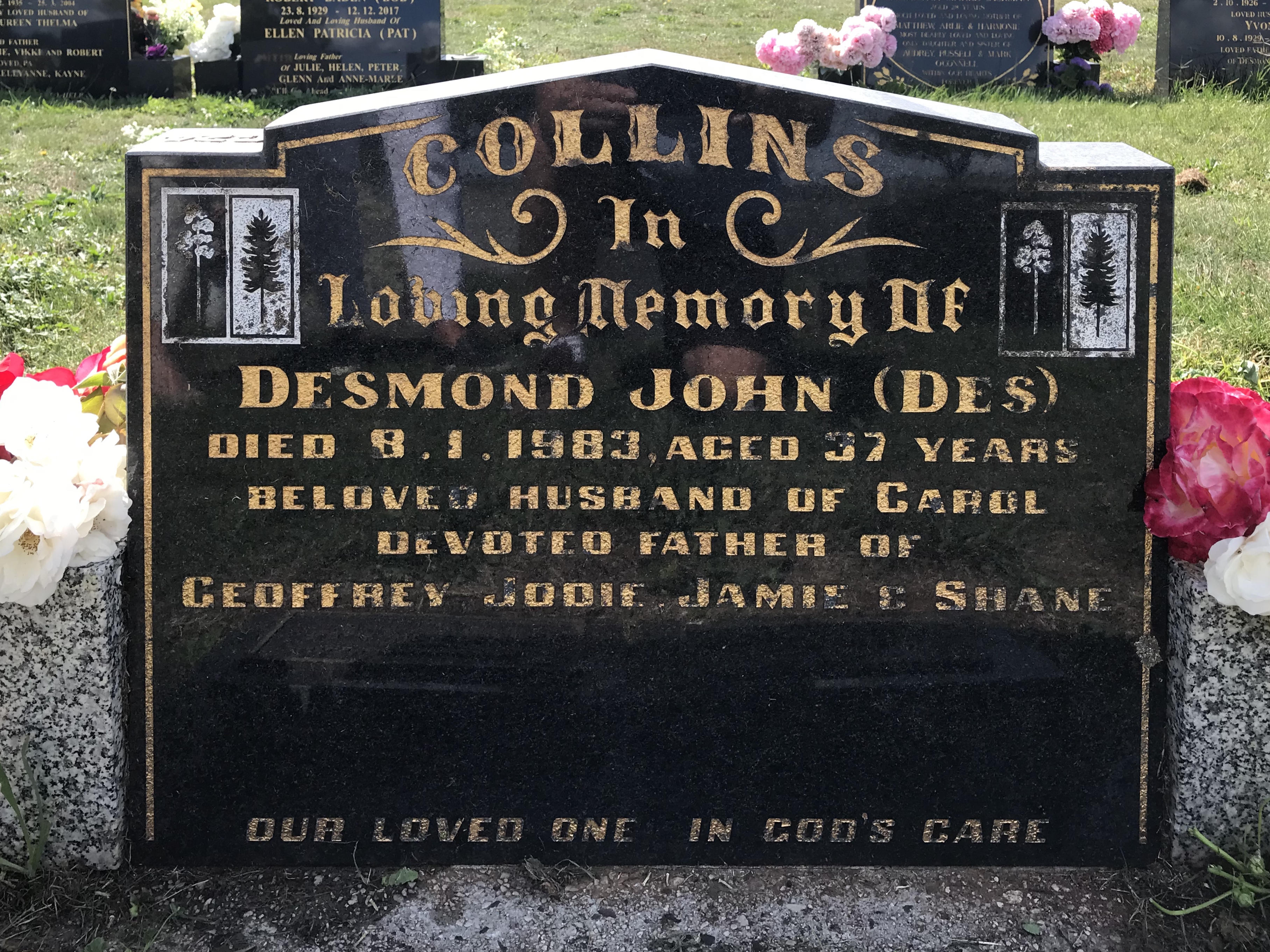 Desmond (Des) John Collins was born at Glenlyon on 12 June 1945 to Frank and Olive Collins.