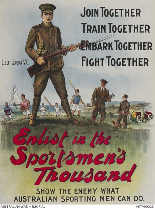 Following his outstanding act of bravery at Gallipoli, Jacka instantly became a national hero and recruitment poster boy for the Sportsmen’s 1000.