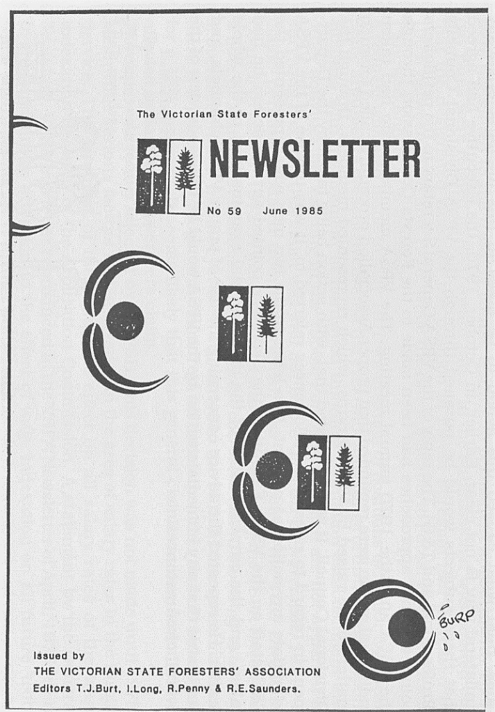 The iconic Forests Commission Victoria (FCV) “two-tree” logo was designed in the early 1960s by graphic artist, Alan Rawady.