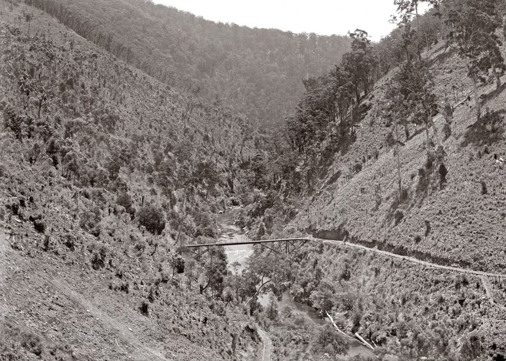 The Poverty Point Bridge was part of a seven-mile, horse-drawn, two-foot gauge tramway to serve the Long Tunnel gold mine in Walhalla during the town’s gold rush.