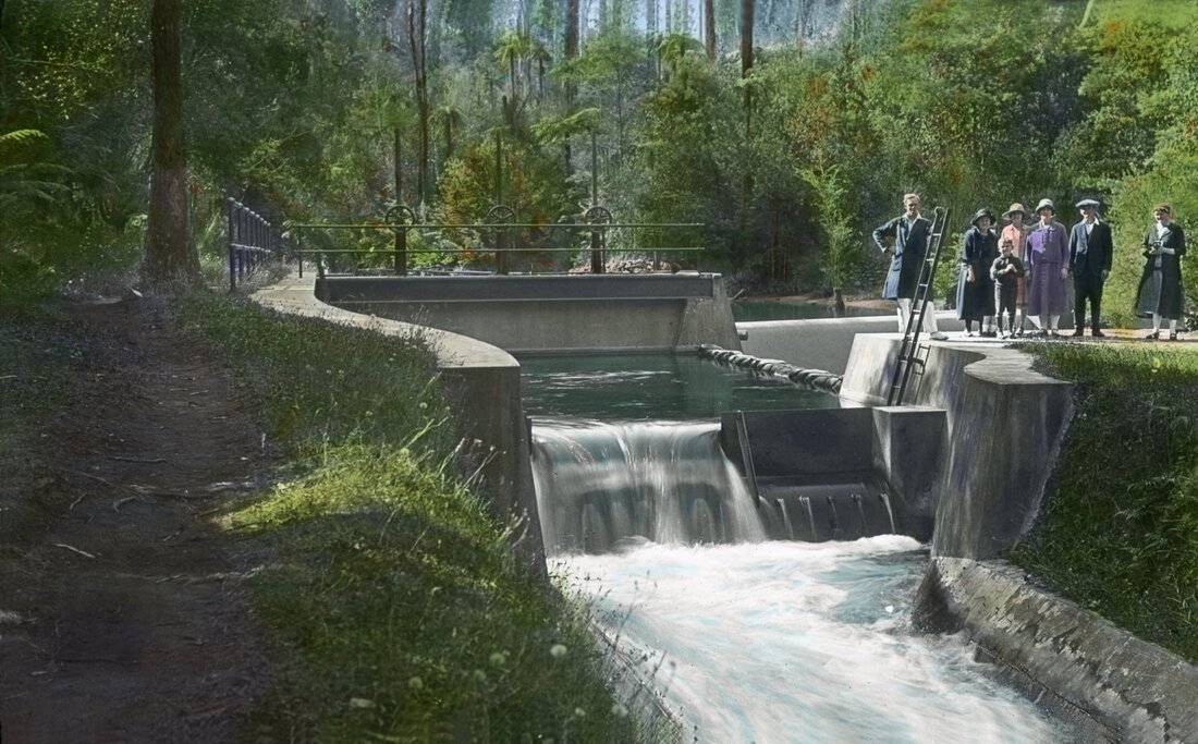 The O’Shannassy scheme was augmented in 1929 by a new weir on the Coranderrk Creek near Healesville which diverted water into an aqueduct that joined near Woori Yallock.