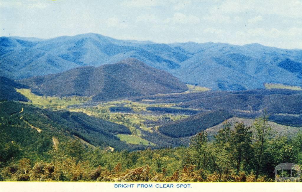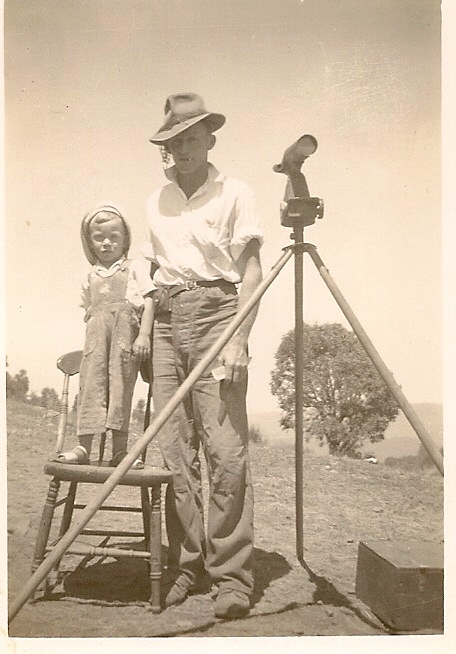 During the summer months from 1951-1956, Les worked as a fire lookout at Mt Clearspot overlooking the Ovens Valley Plantations. He rode his horse up each day to the summit. And until the late 1950s, there was no tower and not much shelter other than a couple of recycled Stanley Huts on just a bit of open ground, with a telescope mounted on a movable tripod.