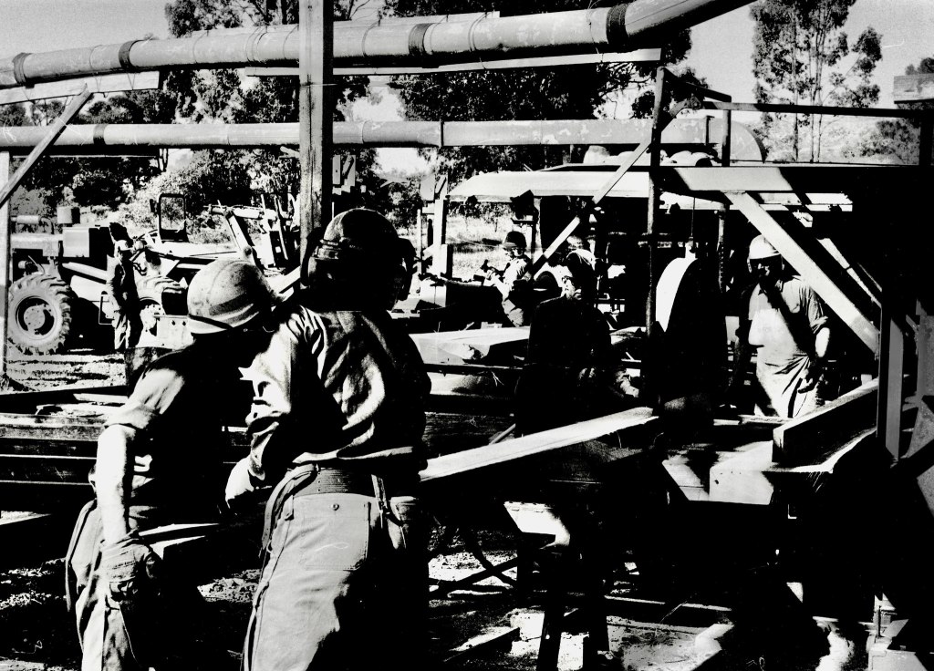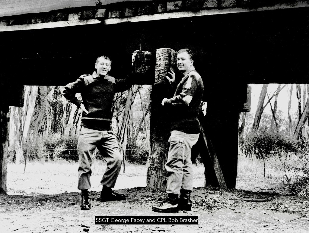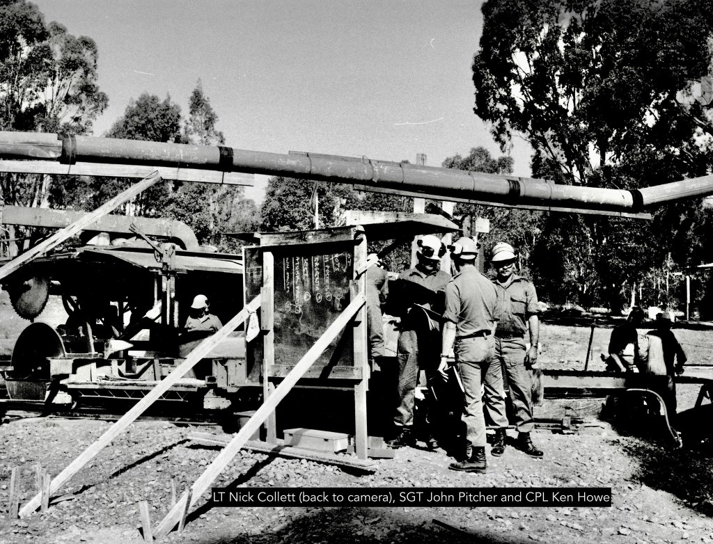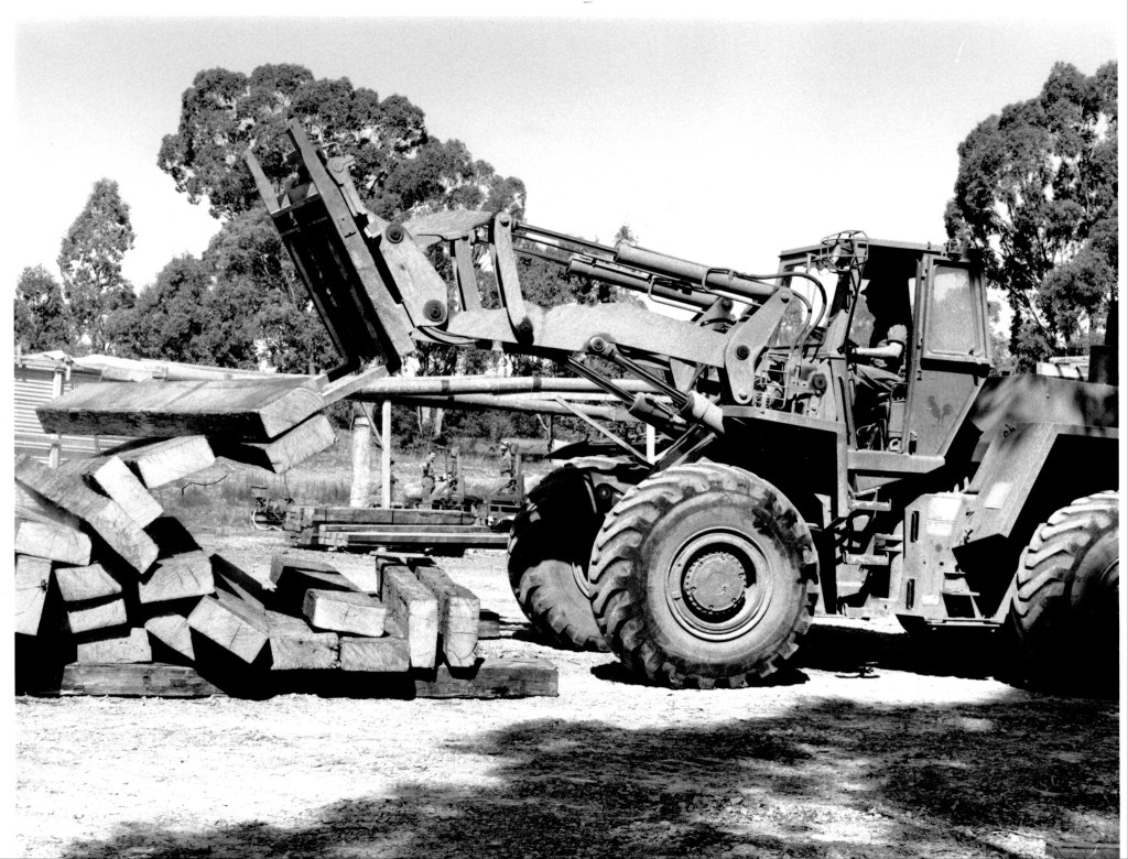 The Muckleford Creek bridge was originally constructed in 1889 and as part of the railway restoration works, the Army Reserve’s 91 Forestry Squadron (The Woodpeckers) milled structural timbers during their annual camp at Puckapunyal in October 1989 using their 60-inch sawmill. The large logs were sourced from State forest.