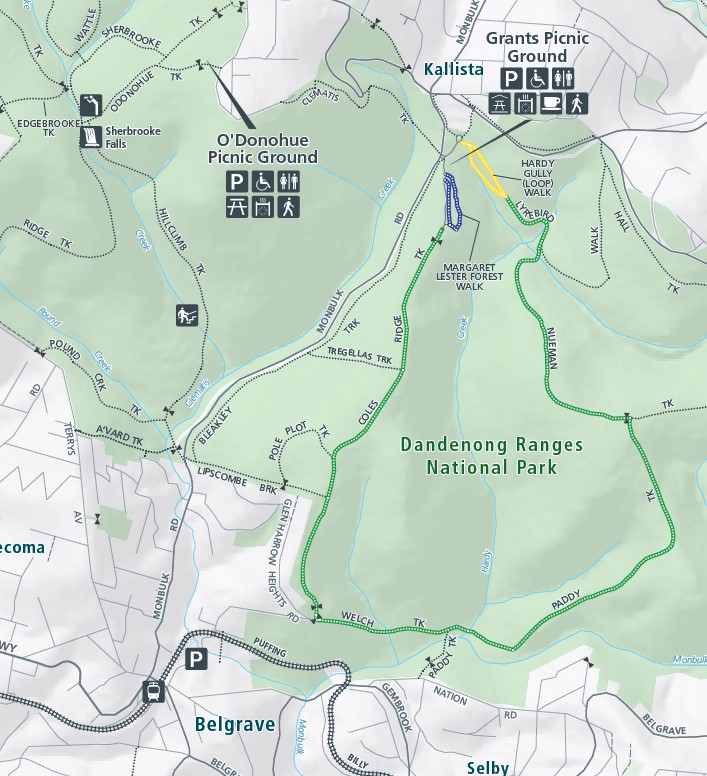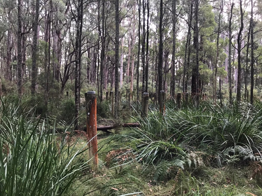The Sherbrooke Forest pole plot is at the southern end of Coles Ridge Track, between Belgrave and Kallista.