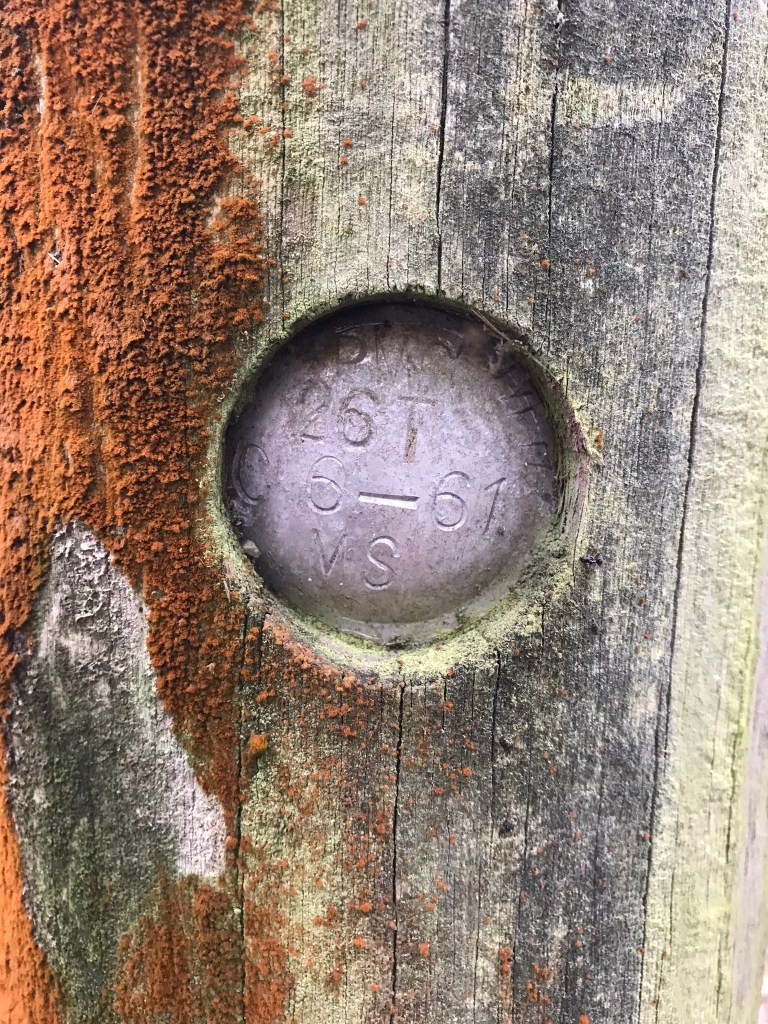 Over time many of the test poles rotted away and were not replaced but some still have PMG metal identification tags. Others just have numbers.