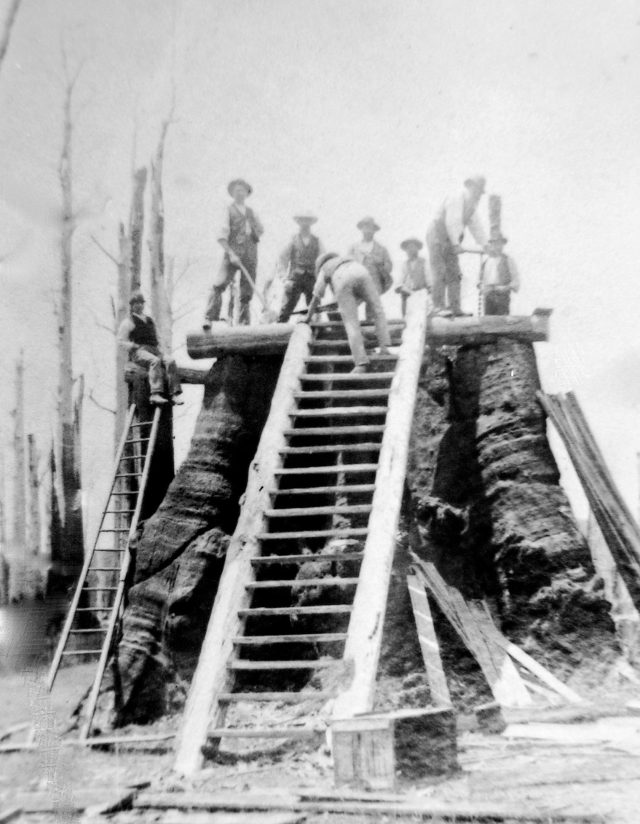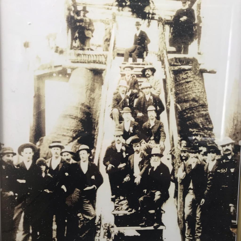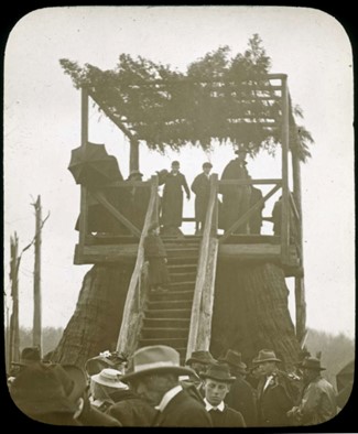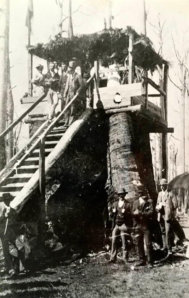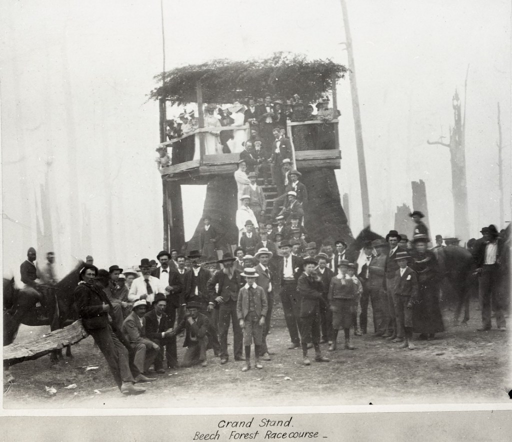 This enormous tree stump was converted into a Grandstand at the Beech Forest turf club in the Otways for their first race meeting in Easter 1893.