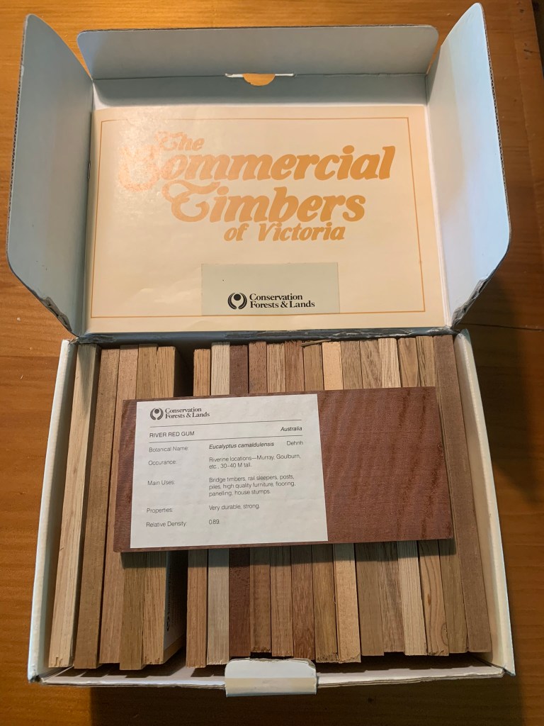 Samples produced by the department to promote Victorian hardwood timbers. Source: Simon Murphy.