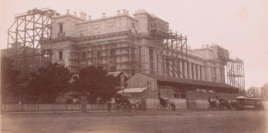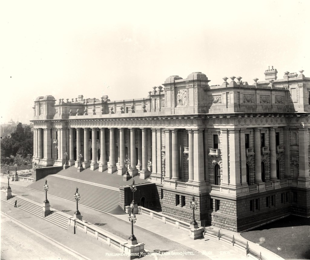 Finally in 1885, a tender to build the classical colonnaded front of Parliament House, which looks down Bourke Street, using Mt Difficult stone was accepted.
