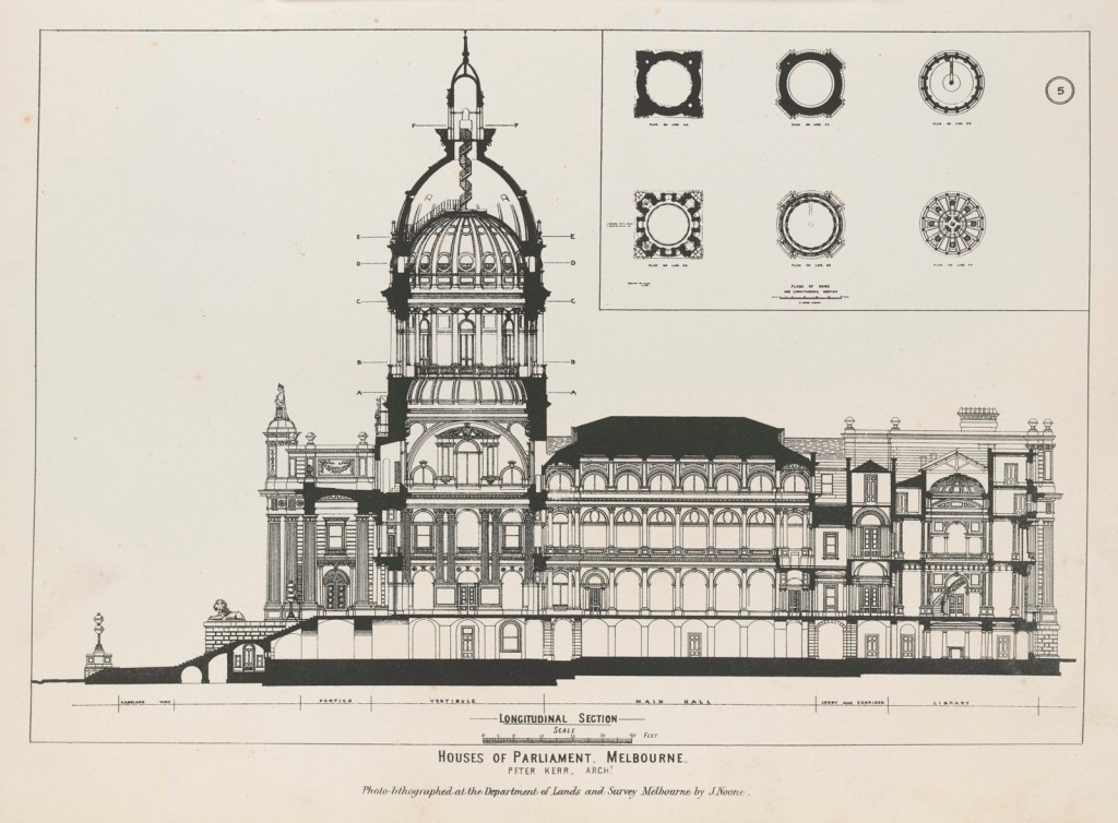 In the 1990s, the State Premier Jeff Kennett suggested completing Parliament House’s unfinished “grand design” which included a large central dome as well as north and south wings. But these new works would have required reopening the Heatherlie Quarry, and it was deemed politically too difficult in a National Park so the idea was shelved.