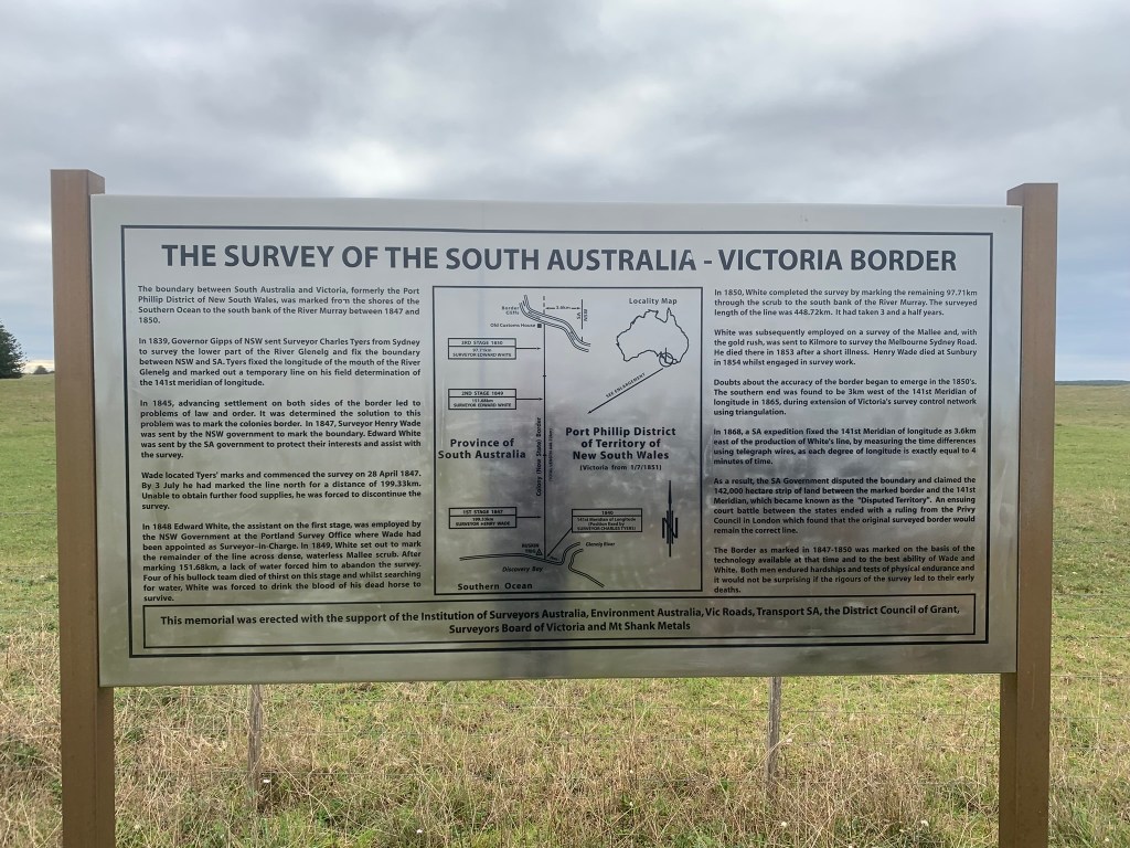 Three years later in 1839, Charles Tyers transferred from the Royal Navy and was given the task to precisely mark the 141 meridian near the mouth of the Glenelg River at Nelson so that the SA border could be clearly identified on the ground.