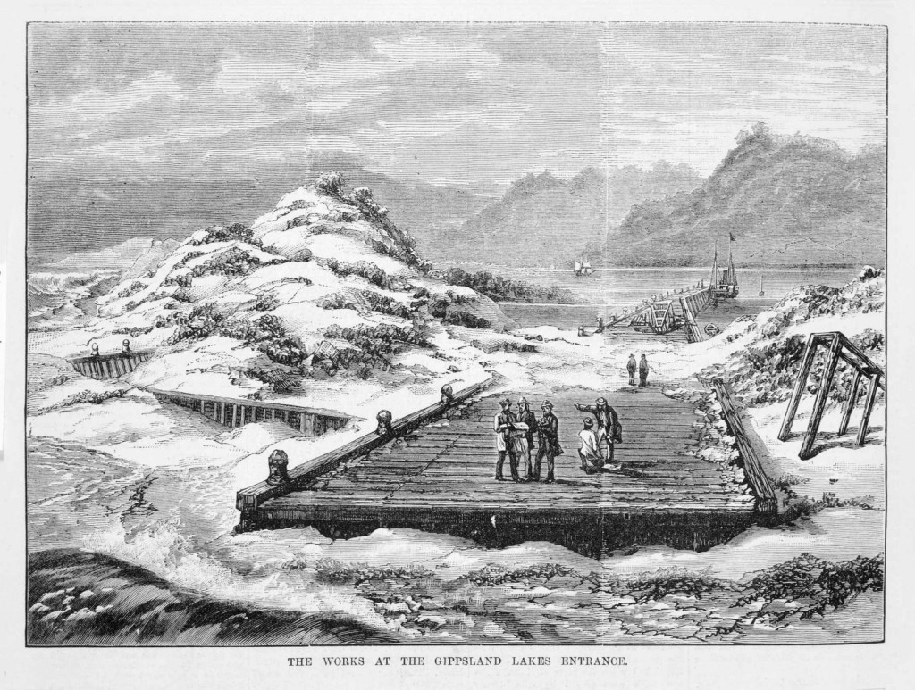 In the years following the goldrush, ships entering the Gippsland Lakes from the southern ocean were subject to the vagaries of shifting sands, floods, winds and tides.