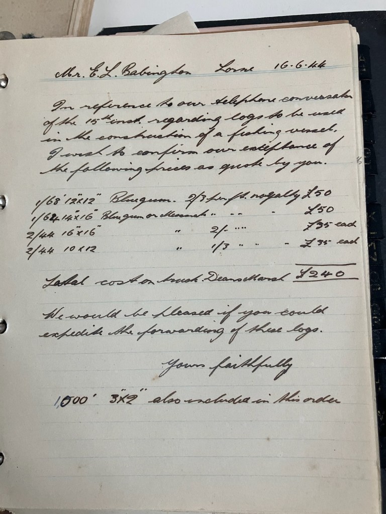 It was during the Second World War and there were severe shortages of experienced people working in the forest, but Edward Babington was employed to cut the blue gum logs from near Benwerrin.