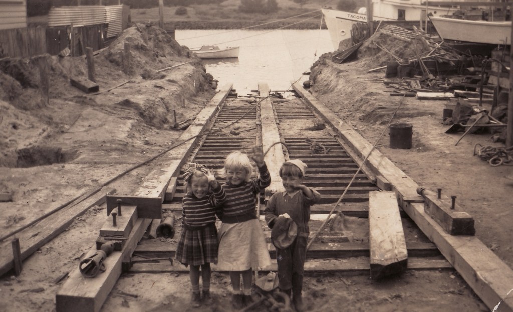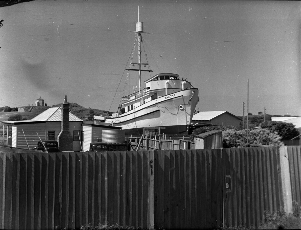 Finally, in mid-1951, the 120-ton Tacoma emerged from its shed. It then took another two months to dig over 130 tons of soil by hand to lower the vessel ready for launching. Tallow from the local butcher was used to grease the slipway.