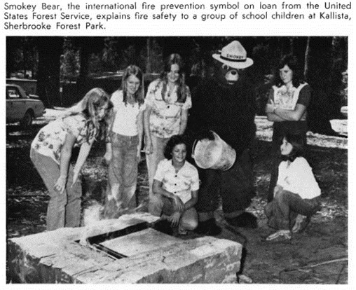 And you might criticise our use of an American Madison Avenue folk figure. Keith Dunstan did (The Sun, 21 Mar 77). Well, we never said that Smokey was anything else than that. Like my other visiting fireman does, he came for a look around, and he gave pleasure to many children and plenty of adults too. He also made some of those citizens, of all ages, think about fire prevention. To criticise Smokey specifically is to ignore the overall assault on our culture, and on the remnants of our national identity. In a global village, in a world where trade is free, there are thousands of international influences we cannot avoid. We can’t avoid Sony calculators, Abba, London and Liverpool slang, sweet and sour pork, Danish blue movies, Starsky and Hutch, and Peugeot bikes, any more than we could avoid computers, or the environmental revolution or the permissive society.