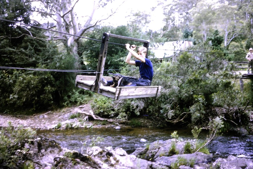 Fred also built a flying fox across the river to the old Howqua township where he owned some blocks of land and where there were a few holiday shacks. The flying fox was always a delight to visitors. It was restored in 1972 but removed in about 2004.