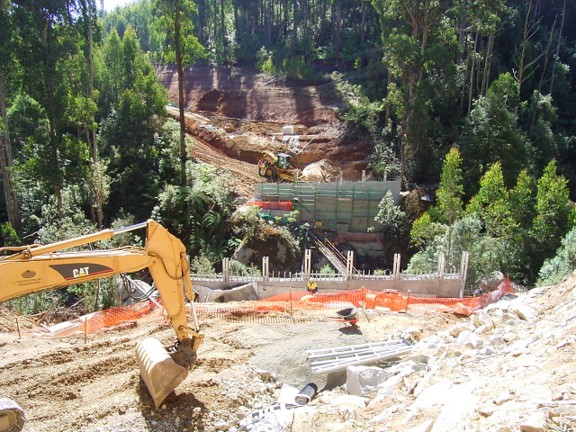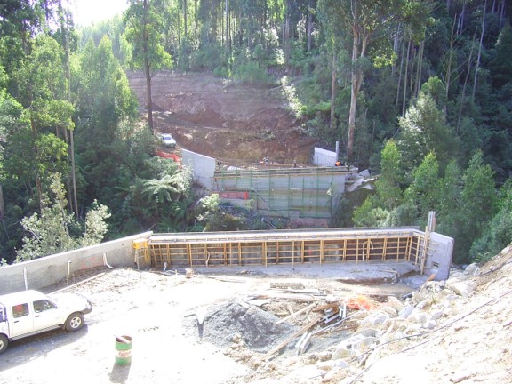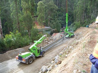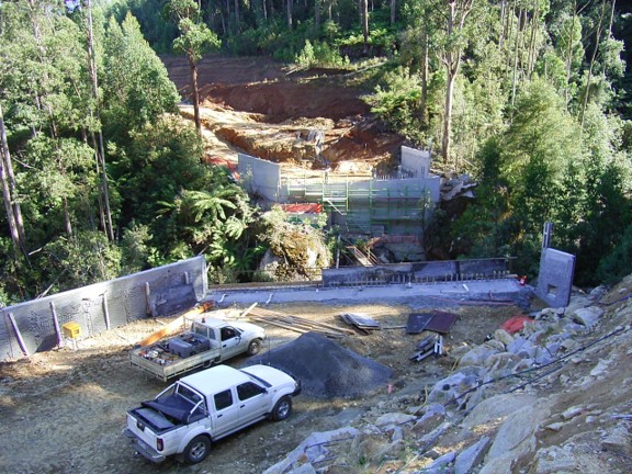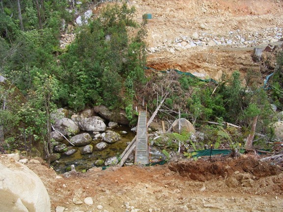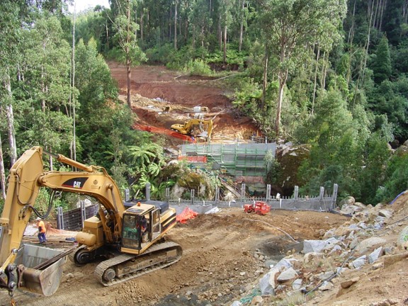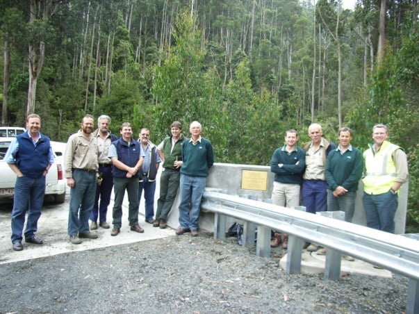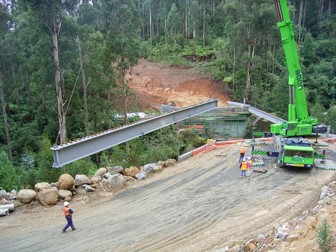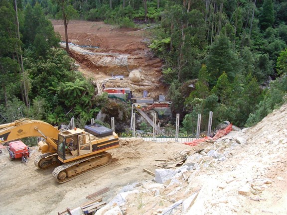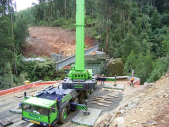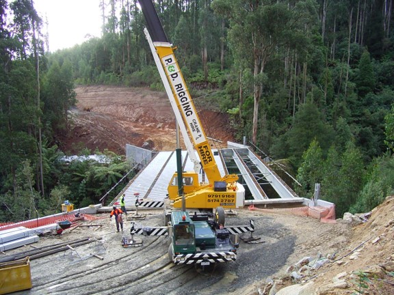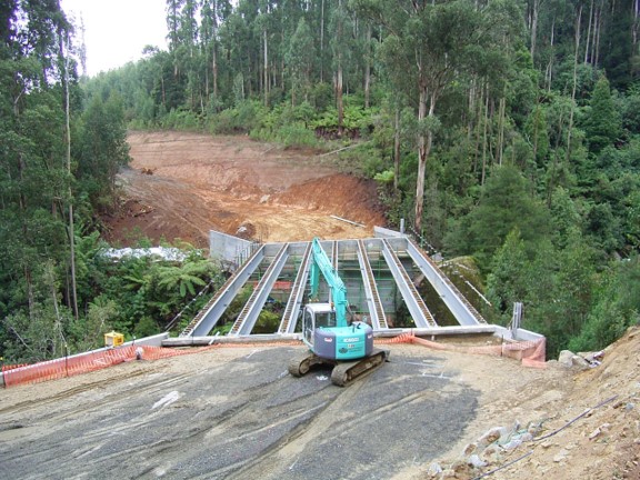 The major engineering obstacle was the bridge over the West Branch of Tyers River. It took six months build between late 2005 and mid-2006 and cost $1.5M. This series of photographs was taken by Peter West, the forester in charge of the project from Erica.