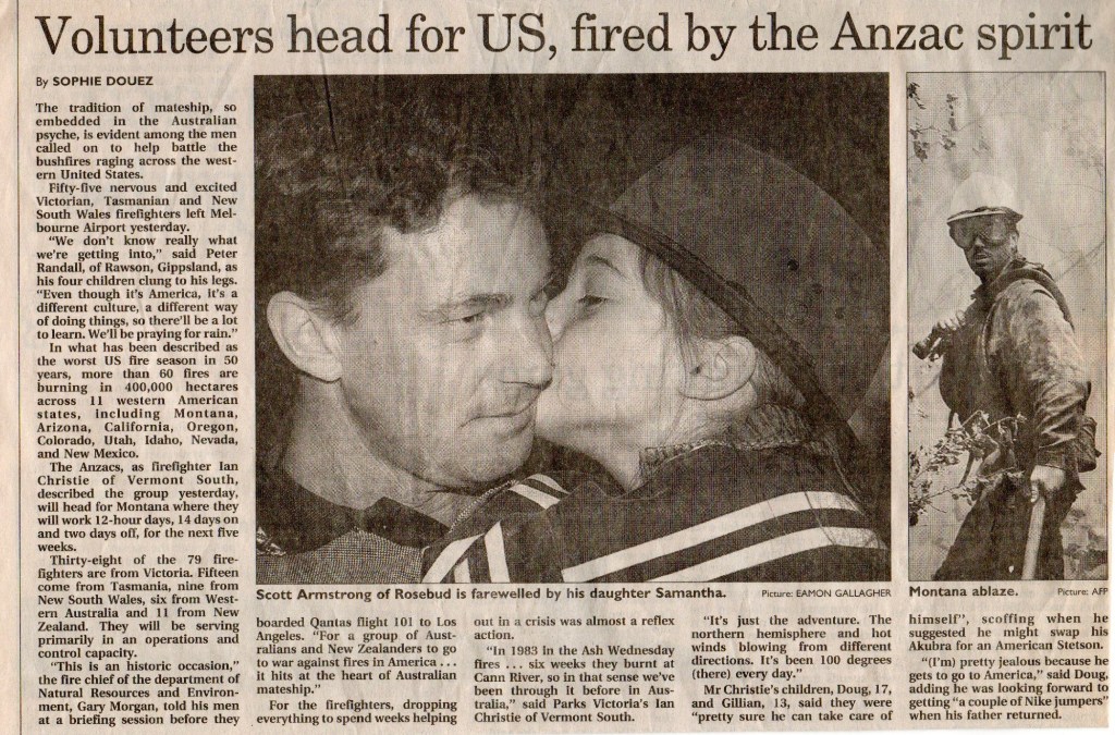 During August and September 2000, a total of 97 firefighting specialists from Australia and New Zealand were deployed to America.