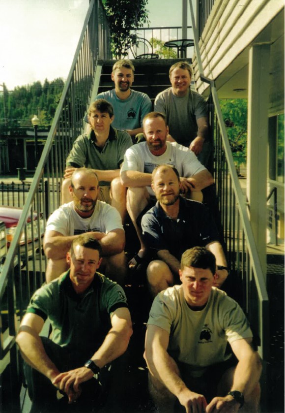 Back row: Colin Smith, Stephen Walls, Paul McDiarmid, Jim Whelan, Richard Alder, Bryan Rees.