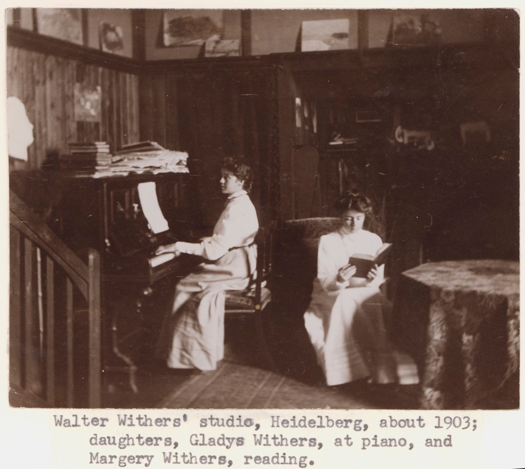The prominent Melbourne landscape artist Walter Withers and his family also settled in Heidelberg and his daughters, Gladys and Margery, became close friends with Phyllis, a keen photographer who documented family life.