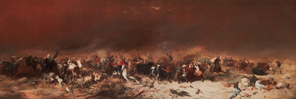 During the following winter of 1849 snow fell in Melbourne with more heavy deluges and floods. This rainfall no doubt led to a build-up of fuel in the forests and grasslands.