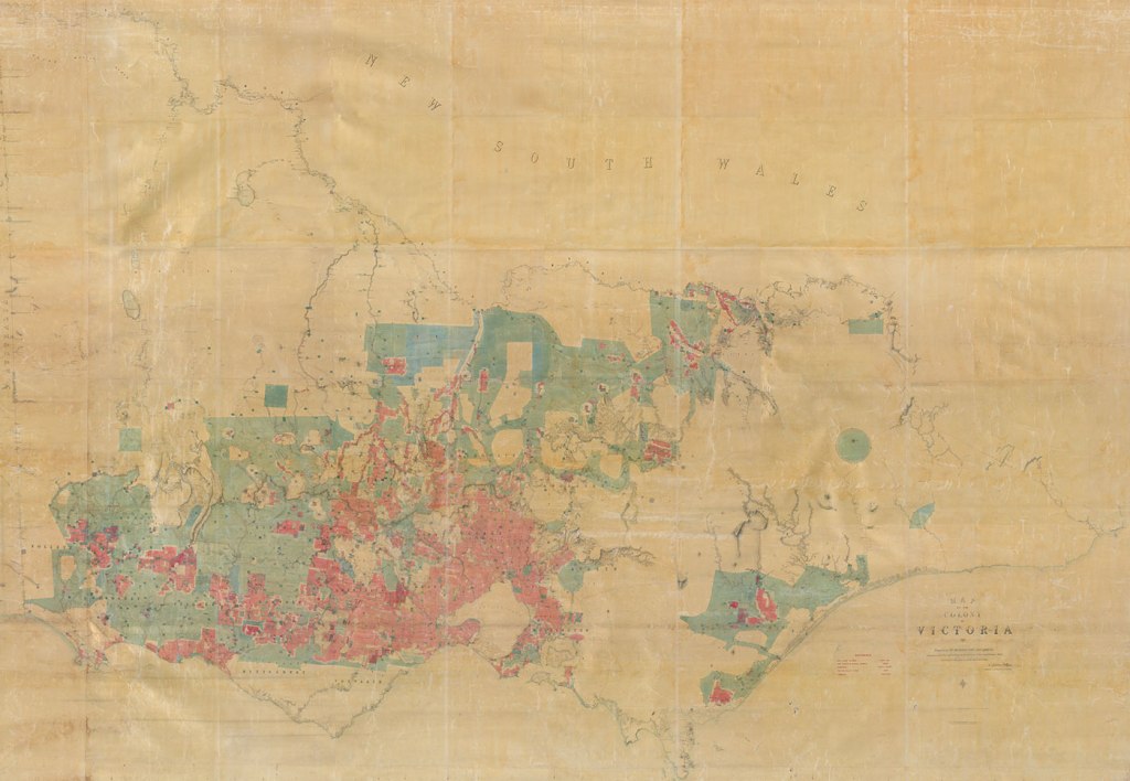 European settlement quickened with the passing of the Sale and Occupation of Crown Lands Act (1862), which was known as the Duffy Act, and attempted to resolve the conflict between squatters, gold seekers and small-scale farmers. The Duffy Act and subsequent amendments under the Grant Act (1865) released a further 10 million acres. The Act was accompanied by “the big map” which was one of the largest maps ever made in Australia, measuring 15 feet by 20 feet.