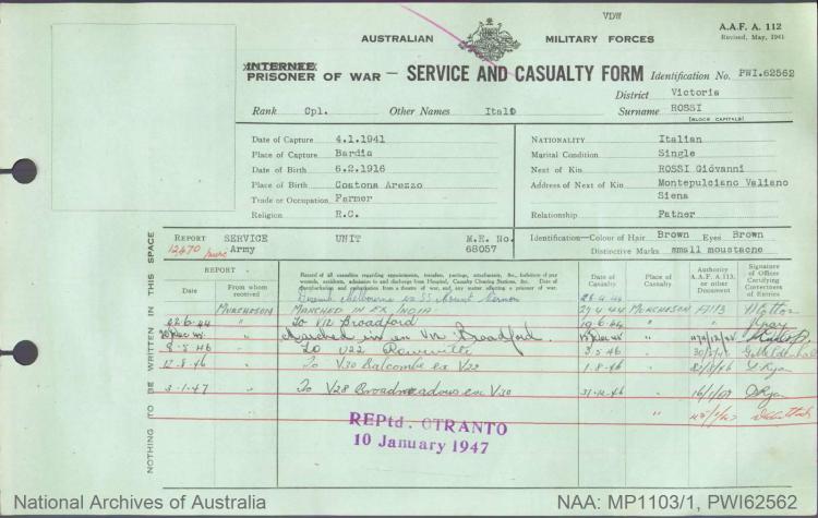 - Men who were naturalised British subjects but of Italian or German descent, and living in Australia, could be drafted into the armed forces. They were often used as Interpreters.
