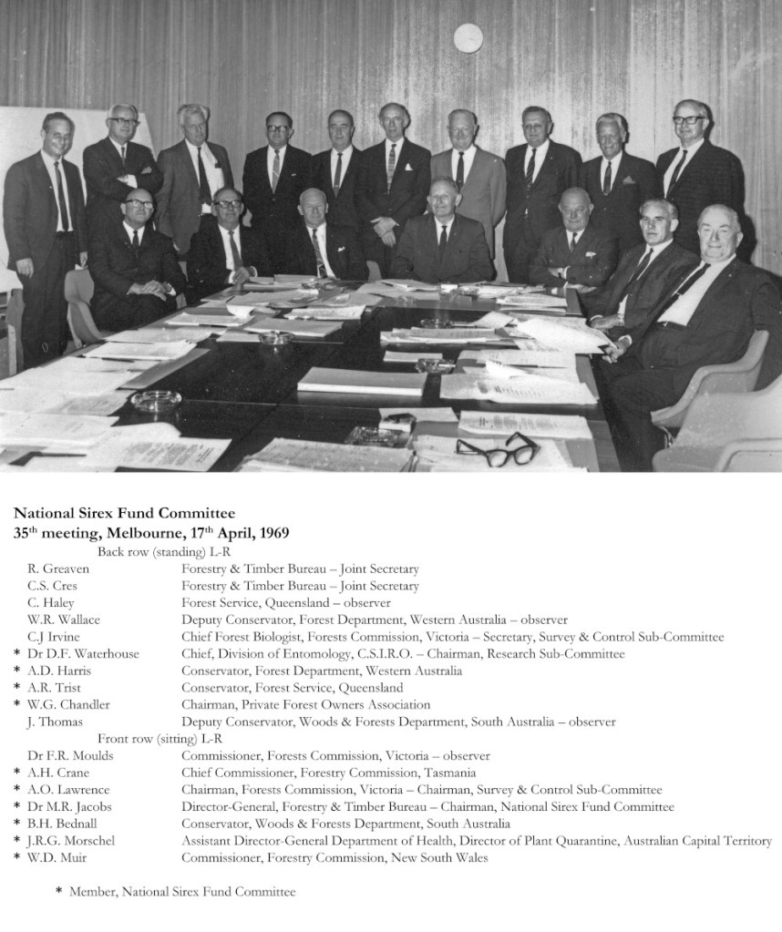A National Sirex Fund was established for surveys and eradication of the insect, and later for research into its control.