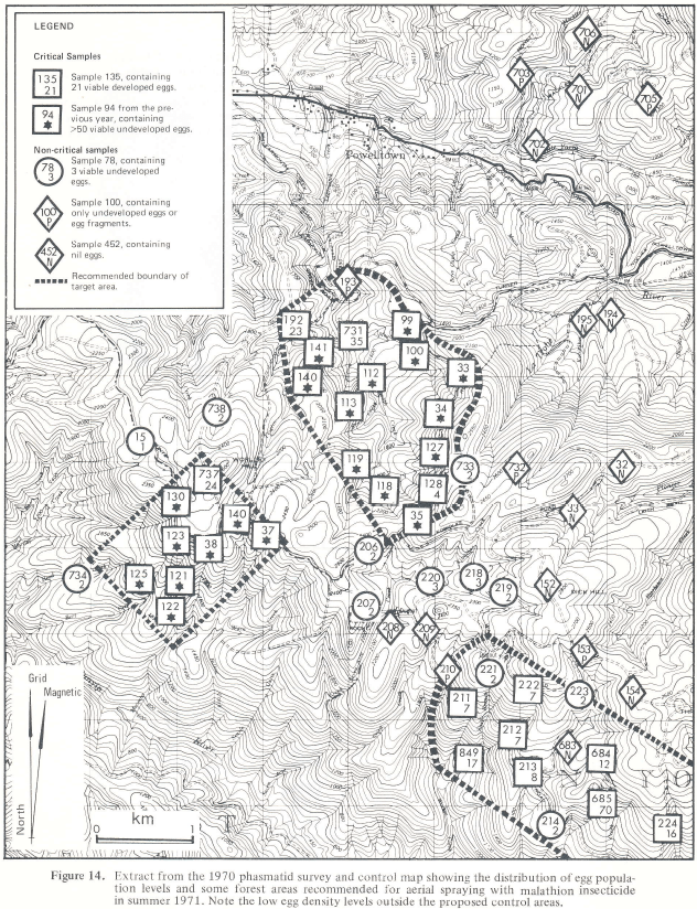 Ref: Fred Neumann, John Harris, Conrad Wood (1977) The phasmatid problem in mountain ash forests of the Central Highlands of Victoria, FCV Bulletin No. 25. https://drive.google.com/file/d/1q5SBbcZhmuWhWqrPYqKaX2rMmoakvTvx/view