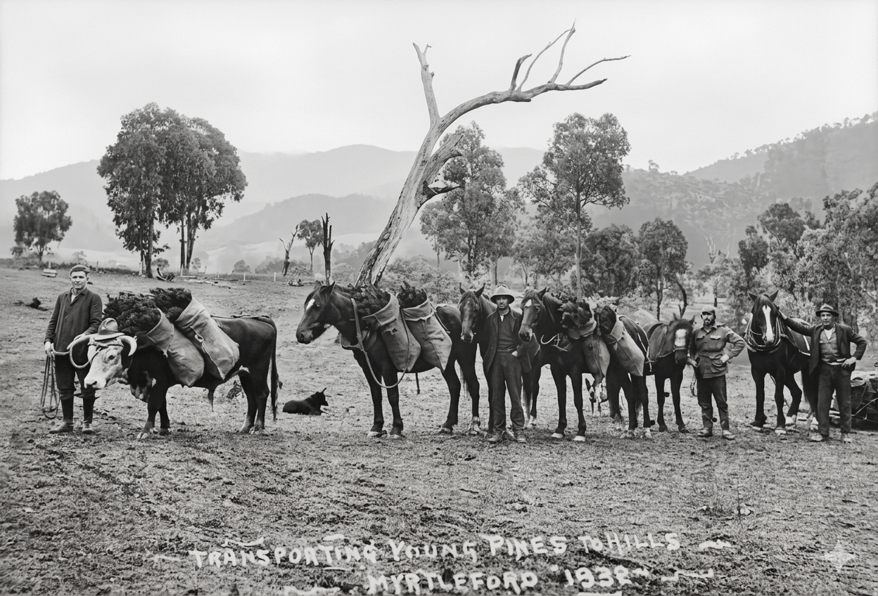 In the Ovens Valley, the men established softwood plantation and did nursery work at Bright and Porepunkah. The works were arranged and supervised by Commission overseers.