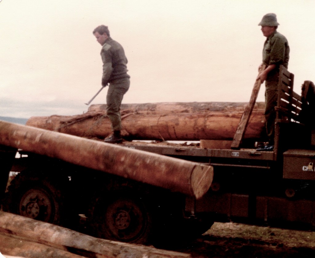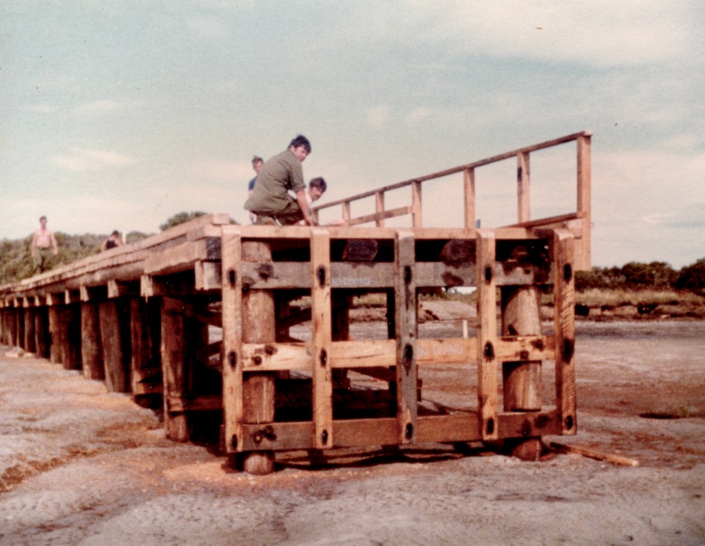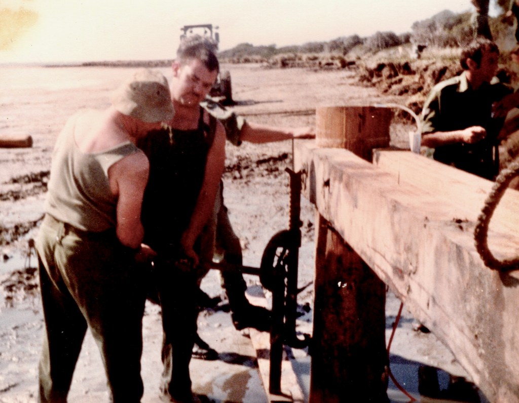 But the new strengthened design for the 53 m long jetty required larger logs and heavier equipment causing a last-minute organising rush from the Royal Australian Engineers (RAE) cadre staff.
