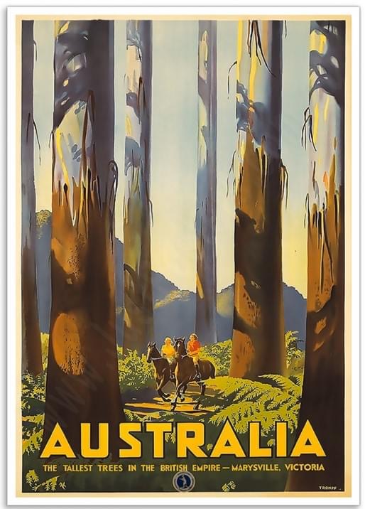Poster: The Tallest Trees in the British Empire. Marysville, Victoria. By Percy Trompf (1936). Australian National Travel Association. National Library of Australia.