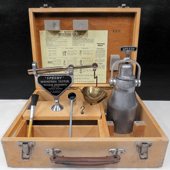 Fuel was first ground using a spong mincer, often attached to the bullbar of a vehicle, and a small sample placed into the Speedy together with a measure of calcium carbide and then sealed. A chemical reaction created gas pressure which was read on the external dial.