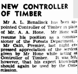 After returning from the war, Ben took the role of State Timber Controller during later stages of the Victorian firewood emergency.
