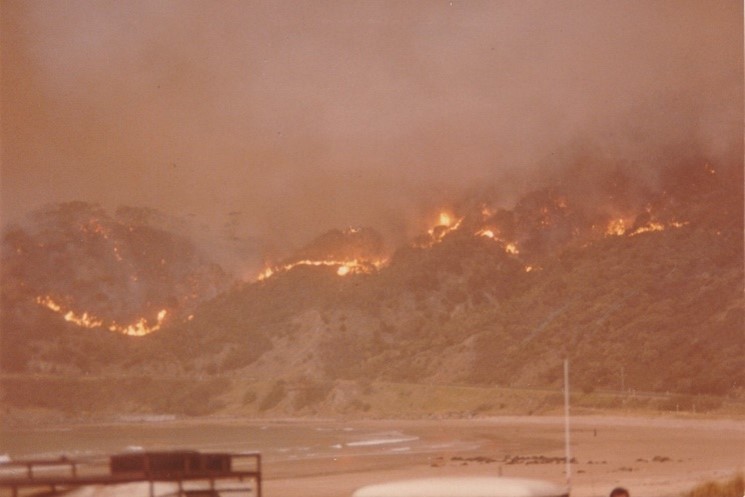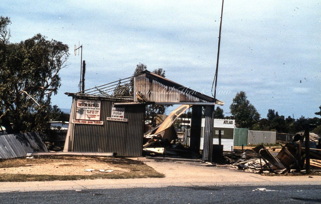 Taken from the house directly opposite emerald secondary college during the very early stages of the Cockatoo fire in the Wright State forest. Photo: Tonia Van den Dungen. Source: Christmas Hills CFA.Tom Van den Dungen watching moments later. Photo: Tonia Van den Dungen. Source: Christmas Hills CFAMany houses and cars were destroyed. Source: The AgeCaroline Ave Cockatoo after Ash Wednesday – Over 300 homes were lost and 6 people were killed. Source: The AgeThis photo was found in a camera shop in Melbourne’s CBD in late 1984. Someone had dropped a negative off in Feb 1983 to be printed and never returned. They told the shop owner that the photo is of Cockatoo on Ash Wednesday Feb 16th, 1983. The photo was taken just after the major wind change to the southwest, and the large bright glow on the left of the photo is the fire front roaring into the town. Tim Fitzgerald.Ian Macrea and his son Robbie, 15, carry their dog and a few possessions from the ruins of their home in Cockatoo, south-east of Melbourne, after the Ash Wednesday bushfires in February 1983. Picture: Mike ArthurRanald Webster was driving the Nar Nar Goon CFA Transit van loaded with fuel when it overturned and caught fire at the time of the wind change. He was badly burned and taken to the Cockatoo medical centre by FCV Overseer Bob Ferres also escaping the blaze. Ranald was given little chance of survival by ambulance officers. His CFA colleague Eddie “Dasha” Lowen died. Photo: Fairfax.Tent city sprang up to support the community. Source: The AgeInside the Cockatoo kindergarten. Source: NAAThe kindergarten at Cockatoo became an important refuge for the community. It has been repurposed as the Ash Wednesday Bushfires Education Centre. Photo: CFAPolice motorbike riding between Cockatoo and Belgrave after the Ash Wednesday fires. Source: Museum Victoria.Main street Cockatoo. Source: Ruth South.Newsreader, Brian Naylor at Cockatoo. Ironically, he was killed at his home at Kinglake West during Black Saturday bushfires 26 years later. Source: Ruth South.Source: NAACaroline Avenue Cockatoo after Ash Wednesday – Over 300 homes were lost and 6 people were killed. Source: The AgeThe clean-up went on for months. Photo: Graham Simpson, CFA Cockatoo.Source: NAALooking into the Wright State forest from the Monbulk- Gembrook road and the tree crown scorch after the fire. Source: NAAAnd the bush in the Wright State forest grew back. Source: NAAThe Wright State forest is situated north and west of Cockatoo and is fringed with modest residential development on narrow gravel roads. Slopes are moderate with mostly a northerly aspect. Creeks generally only run during winter and the main trees are messmate, brown and silver stringybarks with a hakea understory. Fuel loads were moderate to heavy. The north east corner had been fuel reduced and some tracks had been slashed. The two Points of Ignition were in the north west corner on Wright Road. Source: Helen Bull FCV Kallista.