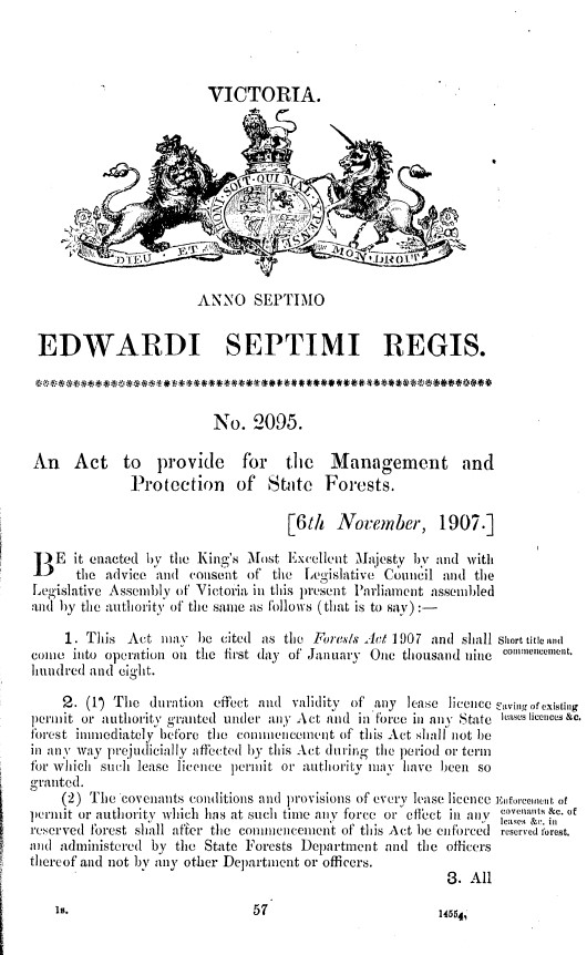 Probably the best-known camps used by the Forests Commission during “Emergency Firewood Project” were in the Mt Disappointment State forests, which was then part of the Broadford District. Charles Pavey was the newly appointed District Forester.