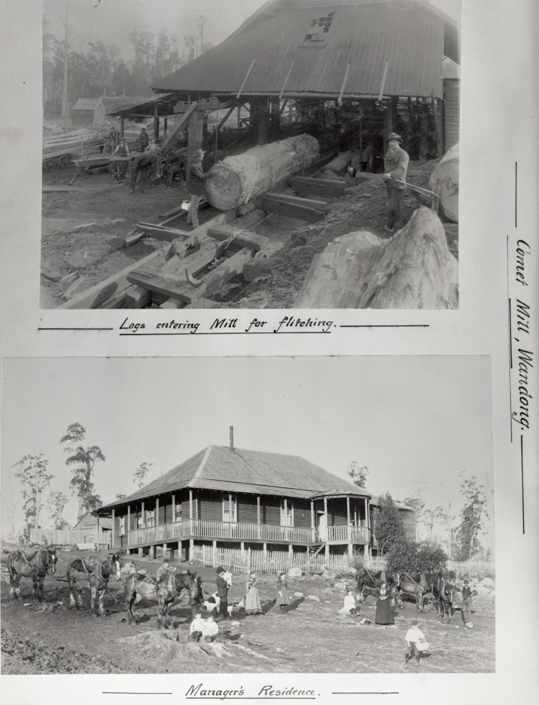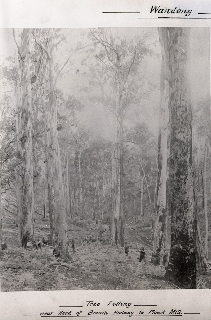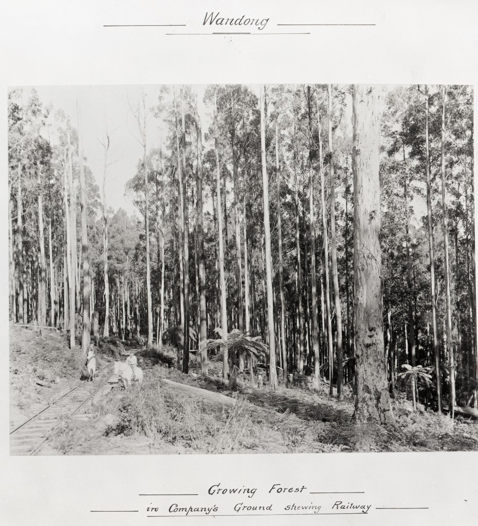 The company owned most of the Wandong township and the railway station grew with several sidings to load and transport seasoned timber to Melbourne.
