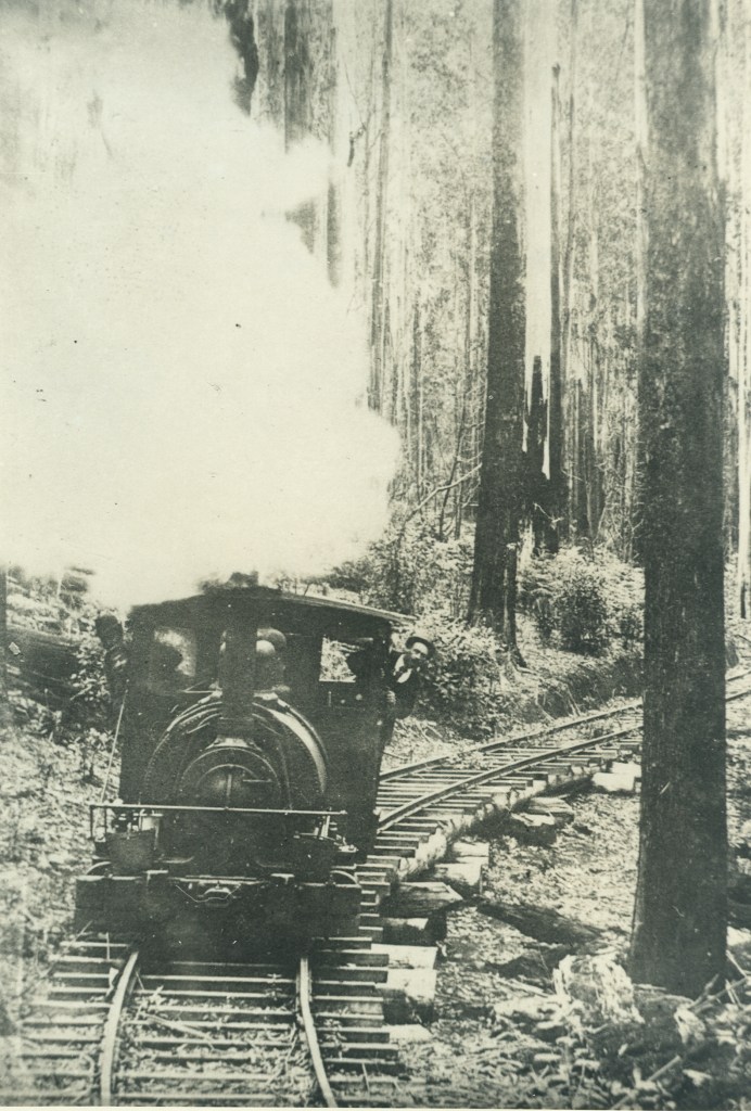 Henry’s No. 1 Mill was established in 1904 deep in the watershed of the West Barwon River. It was one of the largest sawmills in the area and could cut as much as 23 m3 per day. It was connected by a narrow-gauge timber tramline to the railhead at Forrest, ten kilometres to the north. The line included about 57 timber bridges and an impressive 960 foot tunnel at Noonday creek. Several steam engines rode the tracks, the first one in 1911 was known as Tom Thumb.
