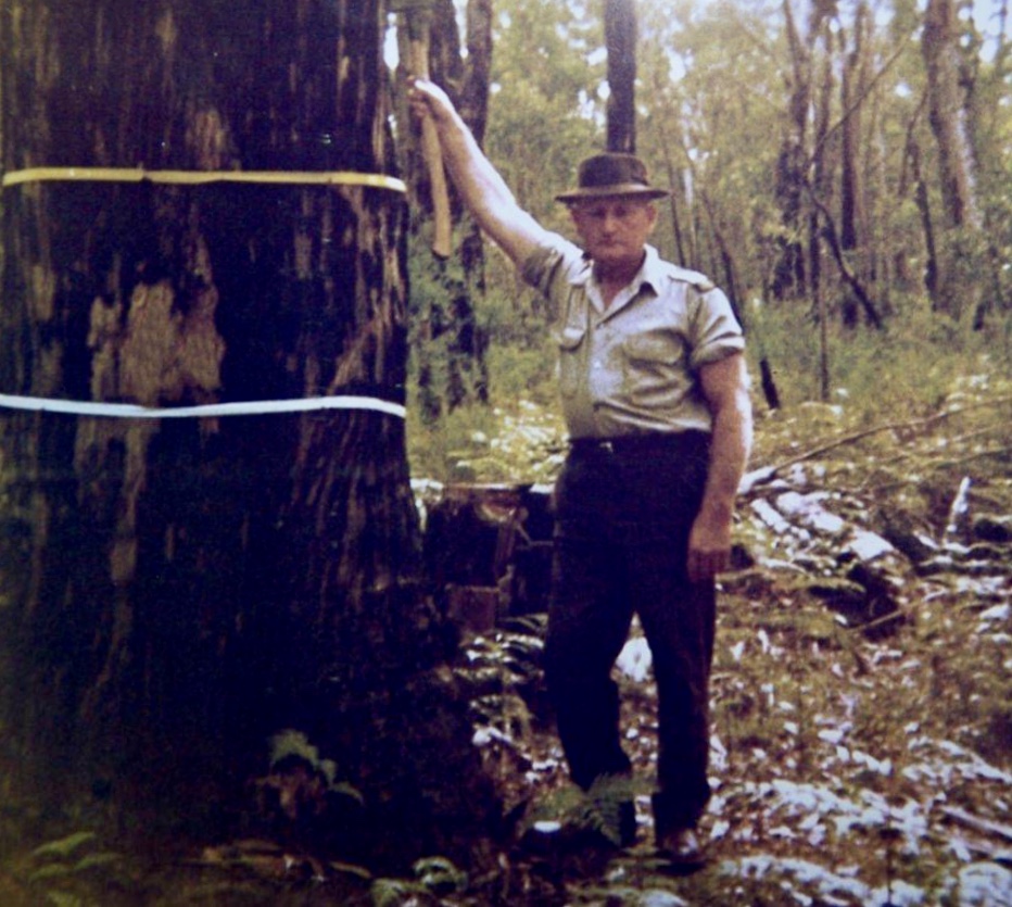 In addition to firefighting, road maintenance and other operational works, one of the main tasks of a forest overseer was marking trees to be felled in the bush before they were snigged out and loaded onto trucks to be delivered to local sawmills.
