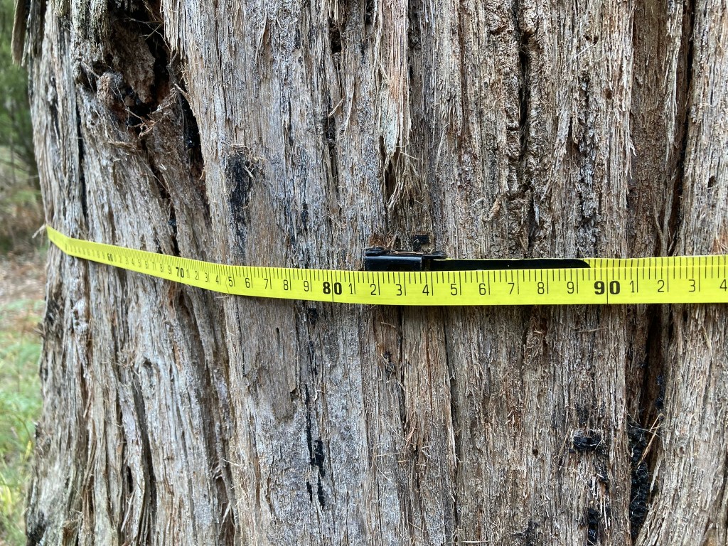 But how do you best measure a river red gum ??? – is it height, girth, diameter, crown size, crown spread or log volume ???